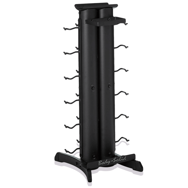 The Body-Solid Accessory Rack | VDRA30 is perfect for storing and organizing multiple accessory bars, ropes, straps and even dumbbells. It’s a perfect addition to any Home Gym. This accessory rack can hold up to 36 items in a very efficient and compact space.