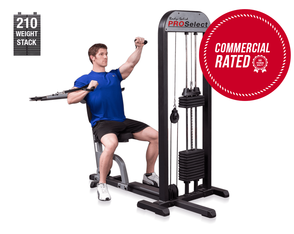 The Body Solid GMFP-STK Pro-Select Multi Press is the most versatile selectorized piece in the Body-Solid line. With built in functional training arms, the GMFP-STK allows for vertical chest presses, incline and decline presses from a multi-adjustable seated position. Then move to the opposite side and perform standing shoulder presses. Outftted with 180 degree rotating pulleys, this multi press unit can accommodate a swiss ball for stability exercises. This uniquely designed piece is perfect for any home and light commercial application.