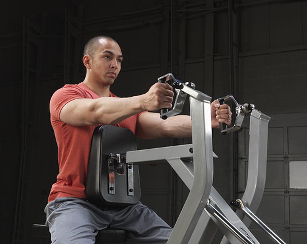 The Body Solid Pro ClubLine Leverage Seated Row | LVSR has a natural feel and resistance of free-weights with the control of a machine.The LVSR also has gas assisted chest support for various arm lengths and total isolation of back muscles.
