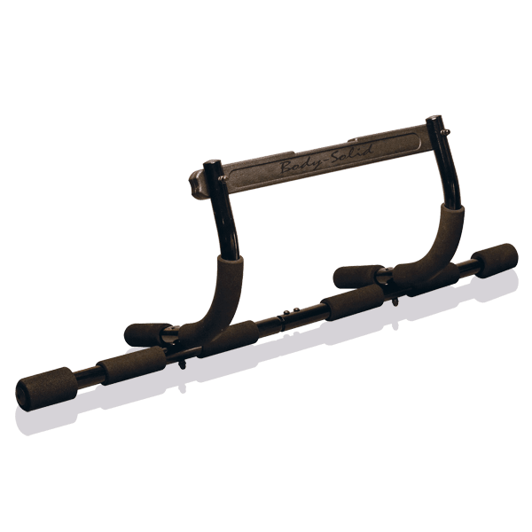 Fits doorways 29″ to 38″ wide, supports up to 300lbs. The Body Solid Mountless Pull Up / Push Up Bar is secured by downward force, an upward force may cause bar to dislodge. Doorway trim should be secure and at least 2″ wide.