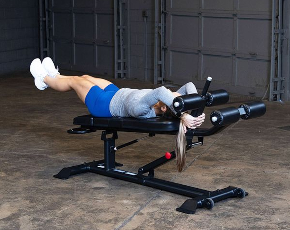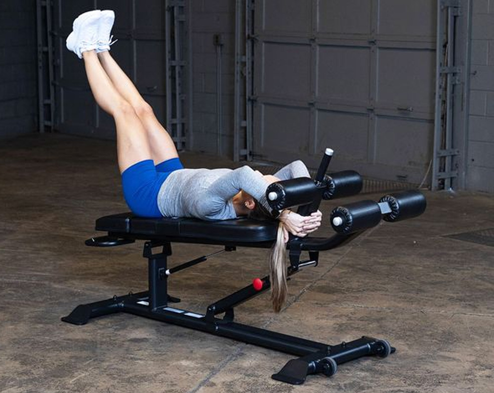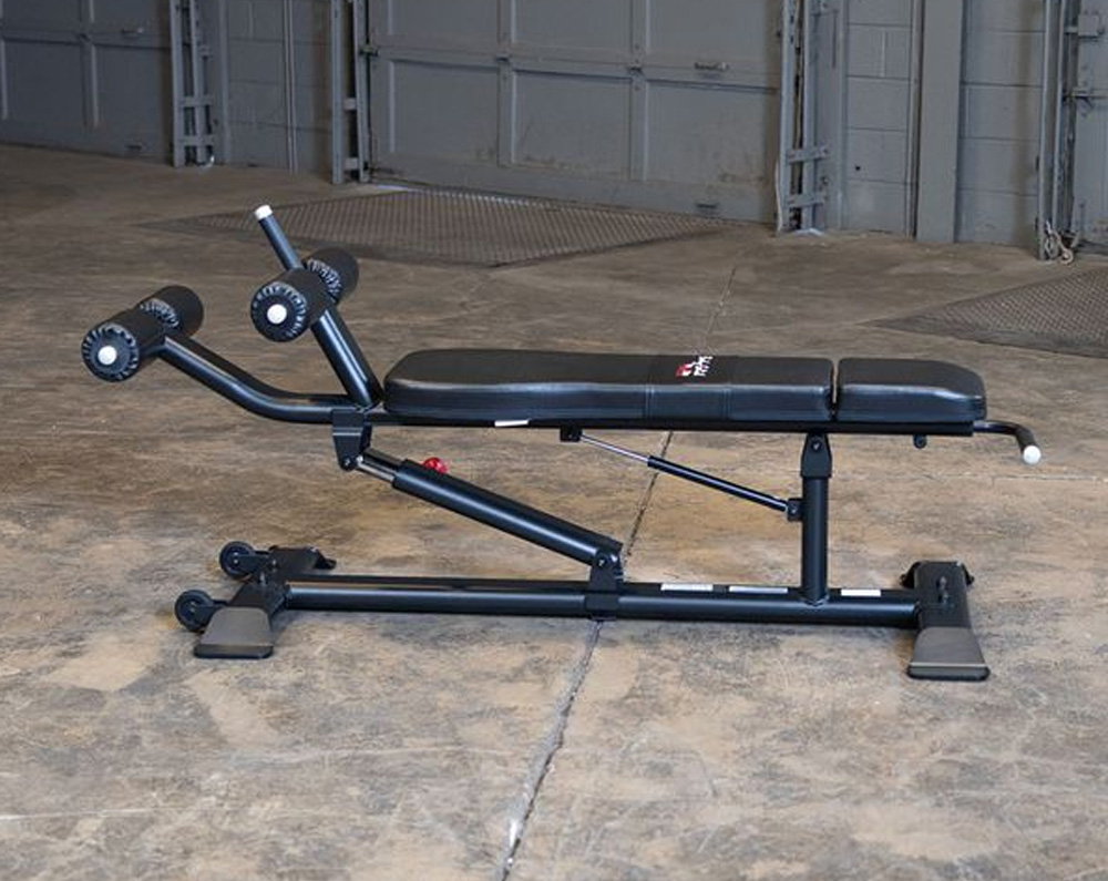 Body-Solid Pro ClubLine Ab Bench BS-SAB500The Body-Solid Pro ClubLine Ab Bench is built to withstand the rigors of a high-traffic workout facility while also maintaining a small enough footprint for smaller studios or homes. Gas-assisted adjustments makes transitions between exercises both painless and fast. A four-point base eliminates any rocking that can occur during workouts while transport wheels and handle make moving the bench a breeze. Foam rollers also ensure your legs stay steady throughout the exercises, allowing for better development of the intended muscles.