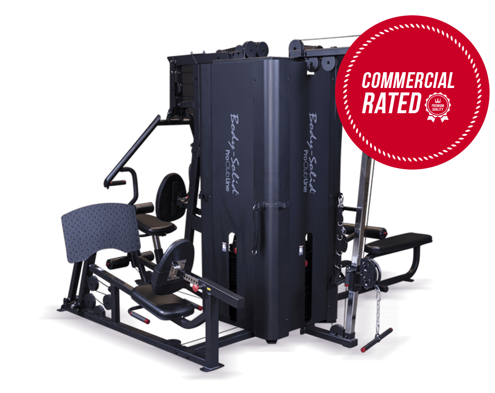 The Body-Solid Pro Clubline S1000 Four-Stack Gym is a full commercial multi-station gym featuring four independent, unique exercise stations and weight stacks, allowing up to four people to work out simultaneously.