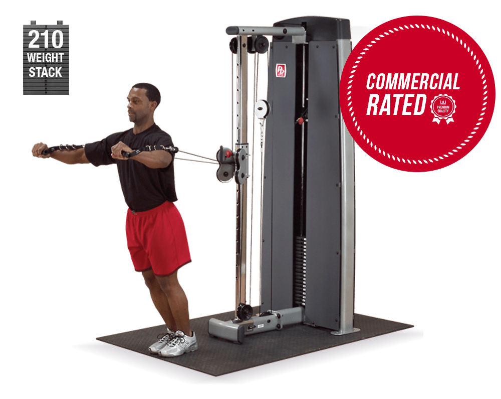 Standard resistance training machines are of limited use for functional training because their fixed patterns rarely mimic natural movements, and they focus the effort on a single muscle group, rather than engaging the stabilizers and peripheral muscles. The Body Solid Pro Dual Cable Column Machine is extremely useful for functional training because it allows you to recruit all major muscle groups while moving in multiple planes.