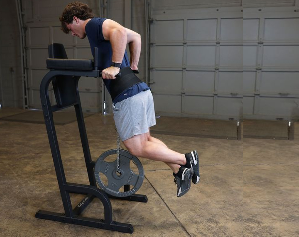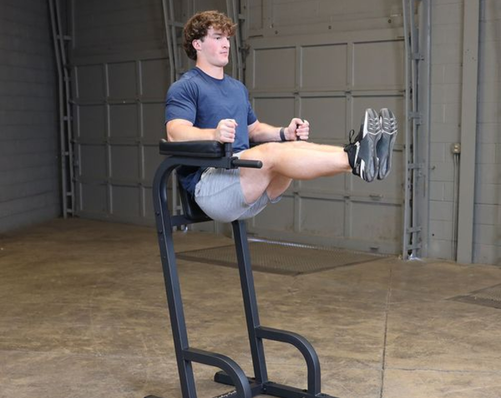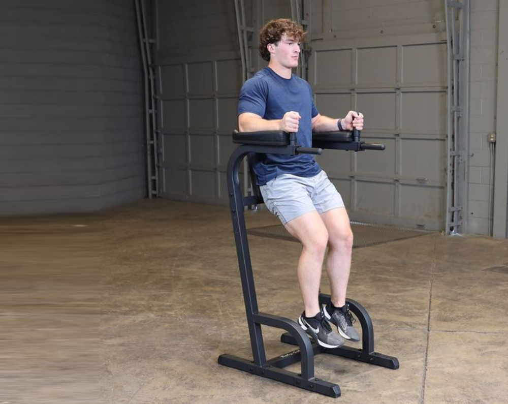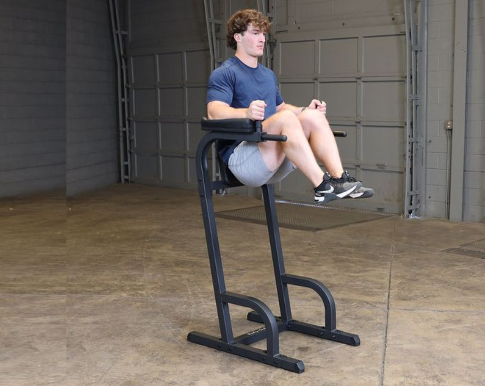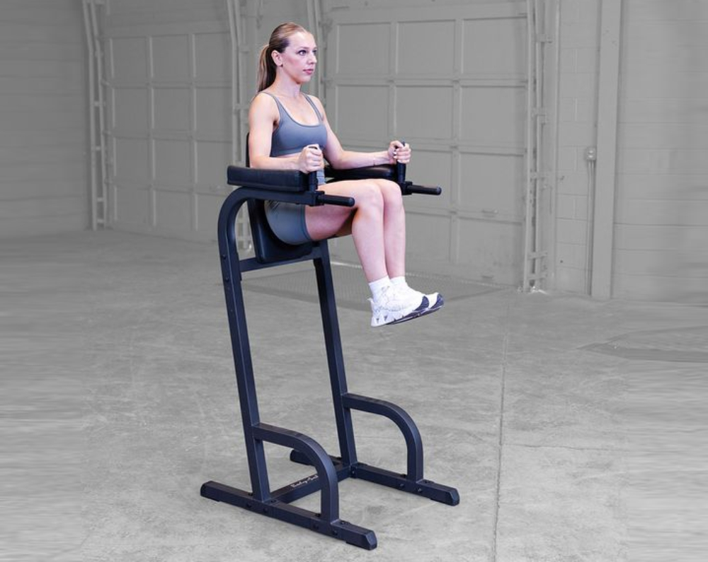The Body-Solid Vertical Knee Raise & Dip | GVKR60Bdesigned to provide an intense ab workout while eliminating strain on the lower back, the Vertical Knee Raise Machine is hard to beat for vacuuming the waistline. Easy and convenient step entry makes getting started a breeze. Thick, comfortable DuraFirm™ back pads and arm supports reduce fatigue and discomfort allowing you keep working on your abs and obliques.
