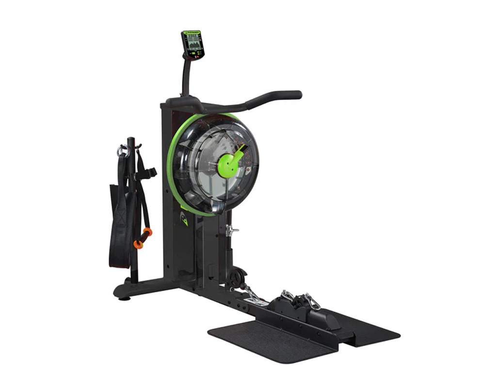 Allow water to create a natural resistance and soothing sound to rowing.