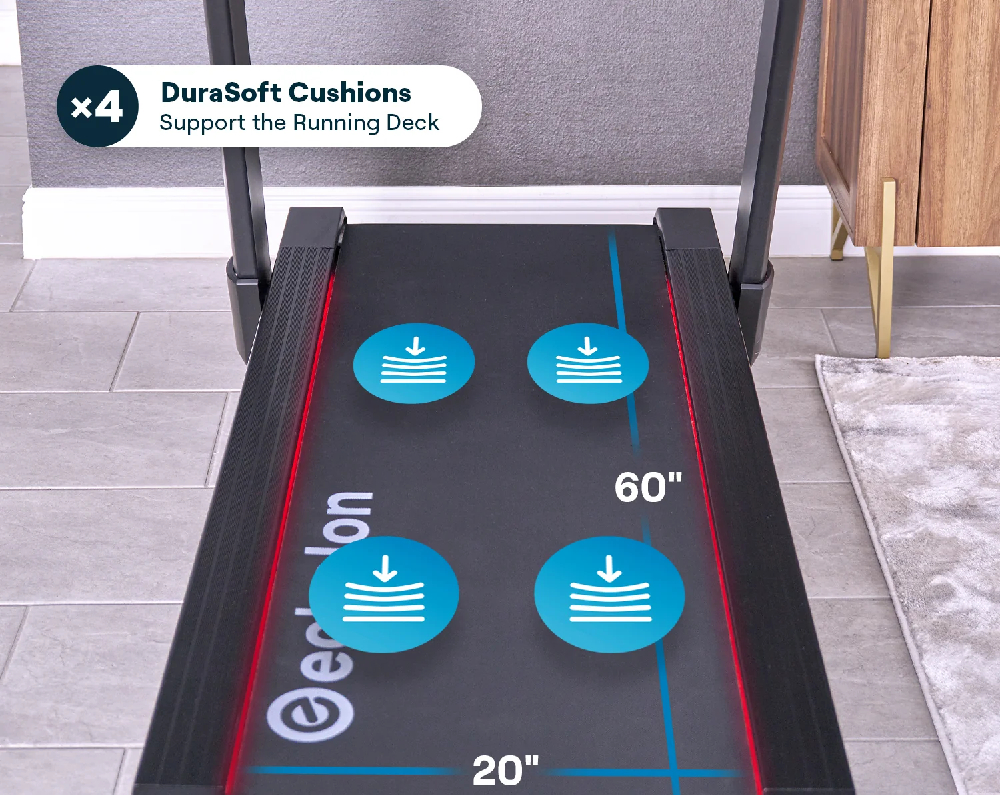 - Comfortable 20” x 60” Running Surface with Quad Cushioned Deck