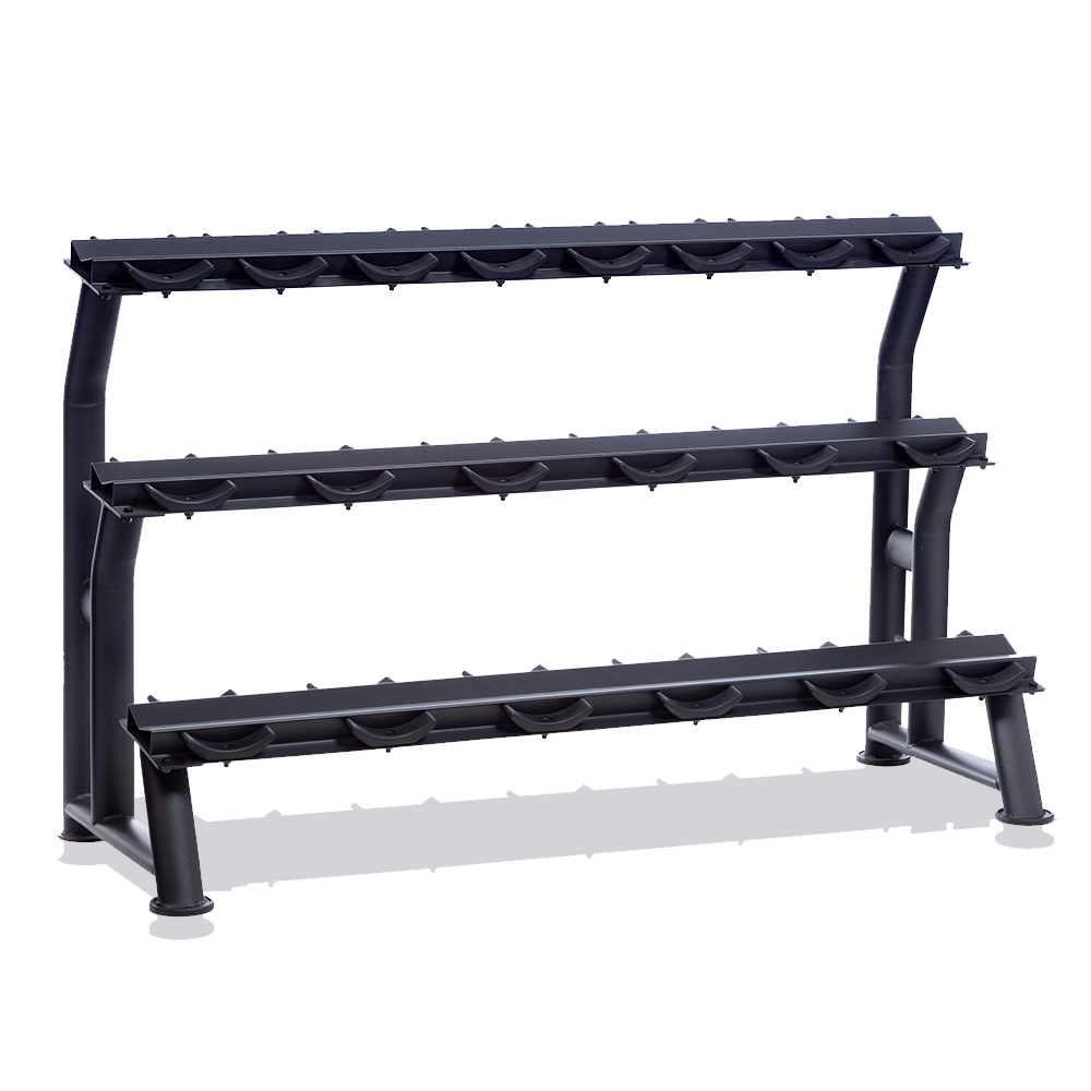 - 3-tiered saddle-style dumbbell racks are beautifully designed to hold a variety of our different types of dumbbells.