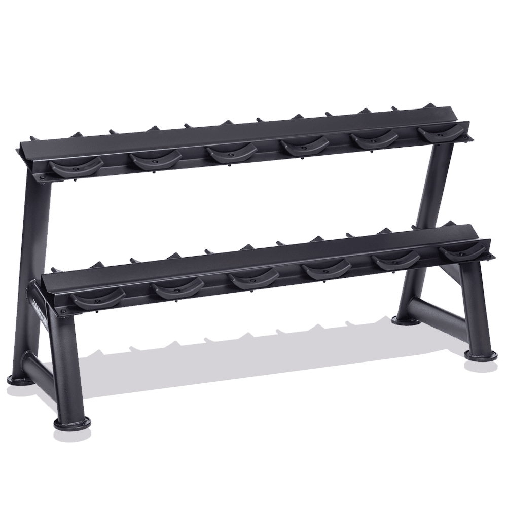 With no sharp edges to disfigure your dumbbells, our Hampton 6 Pair Saddle Rack (2T-SDL-6) have biomechanically-designed tiers to make loading and off-loading your dumbbells safer and less labor-intensive.