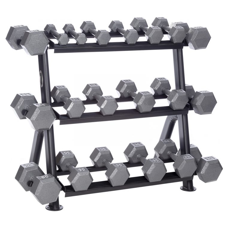 - 3-Tier Horizontal Rack, Holds up to 10 pairs Dura-Bell® or Pro-Hex Dumbbells