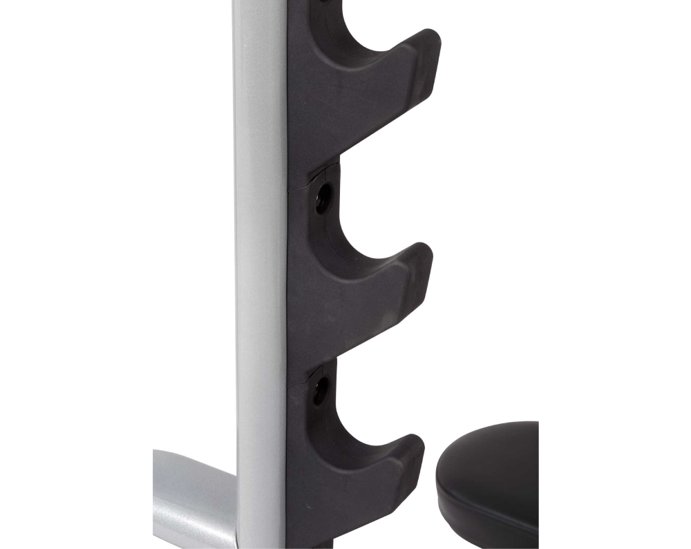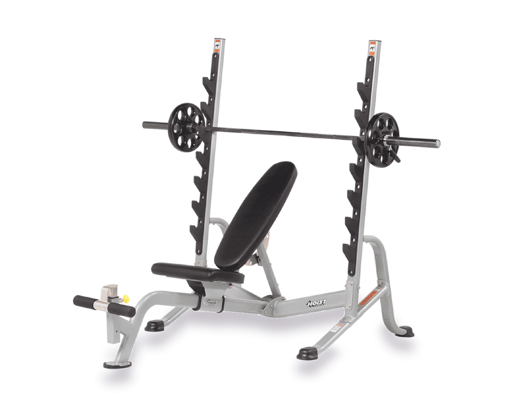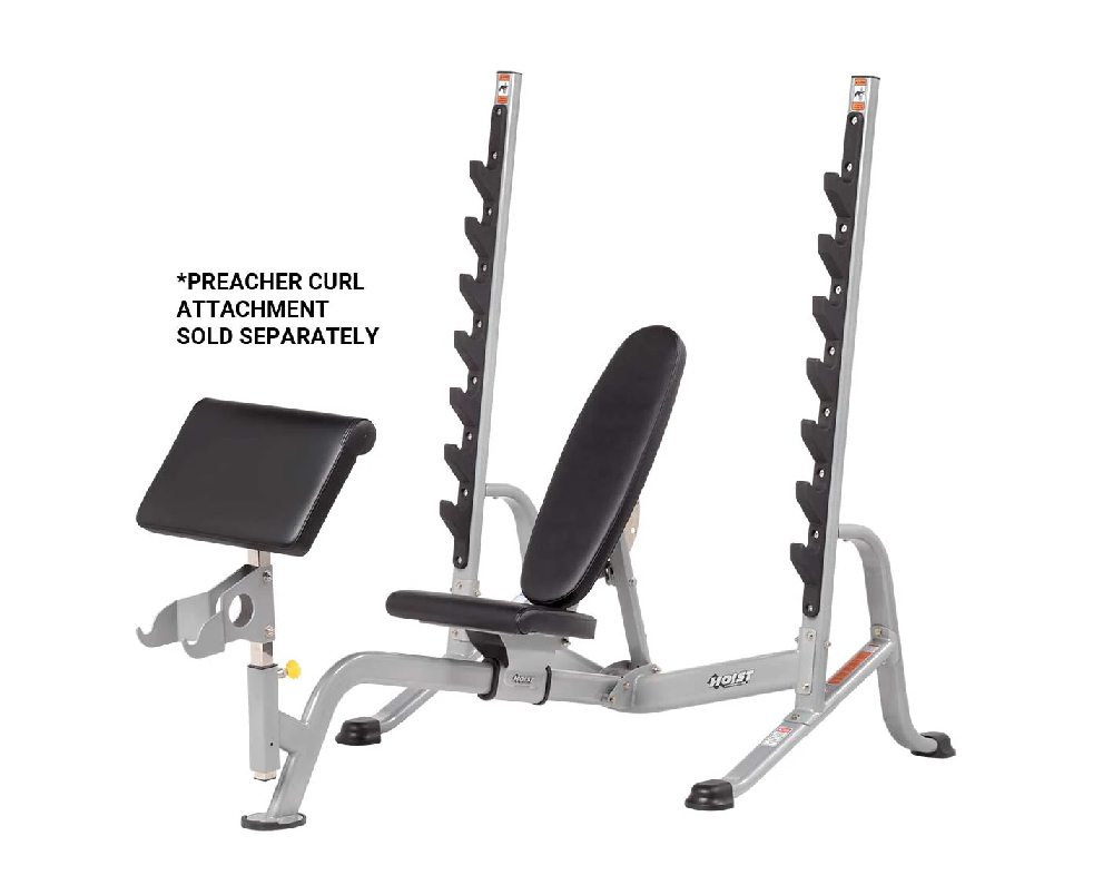 The Hoist Fitness 7 Position F.I.D. Olympic Bench HF-5170-PL is a top-of-the-line bench designed for home use. It features rack-out tiers with polyurethane covers to eliminate noise and protect the bar and machine, as well as a modern frame with oval tubing. The bench also has non-metallic foot covers to protect flooring, and 7 adjustable angle positions from -10º to 75º to accommodate flat, incline and decline bench or shoulder exercises. The HOIST Fitness Olympic Weight Lifting Bench is ideal for getting a full-body workout. The adjustable bench can be used for a variety of strength training exercises. Leg extension/leg curl and preacher curl attachments are sold separately.