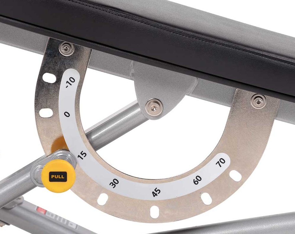 - 7 adjustable angle positions from -10º to 75º to accommodate flat, incline and decline bench or shoulder exercises
