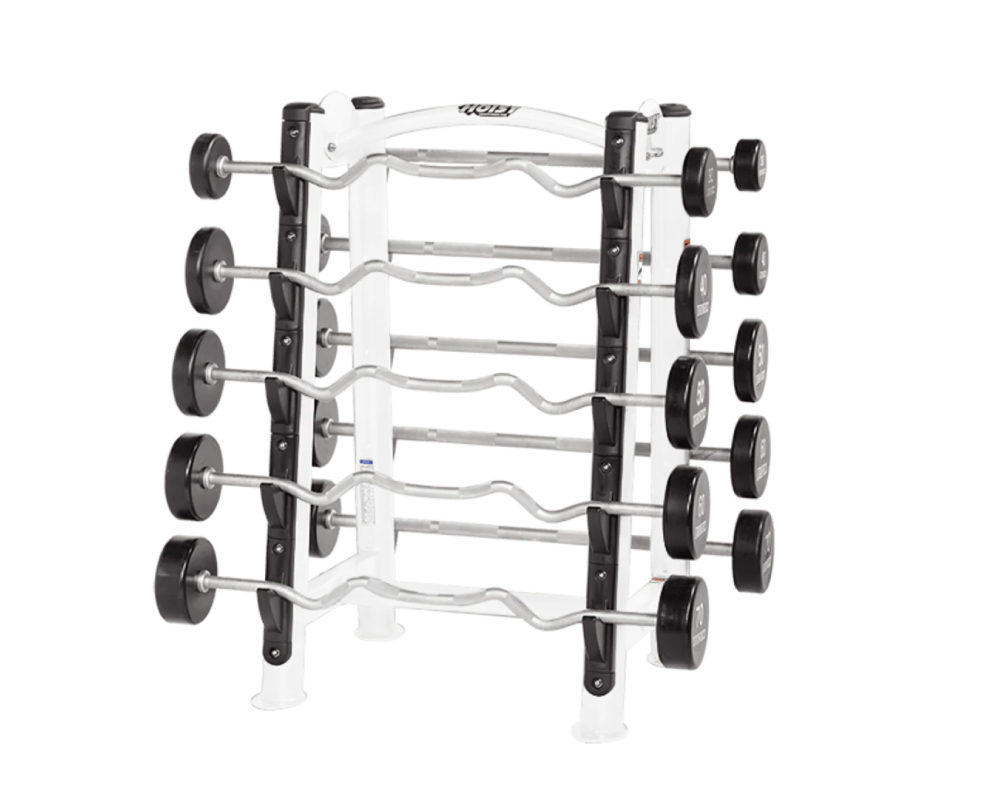 - Incorporates ten barbell holders for organized storage