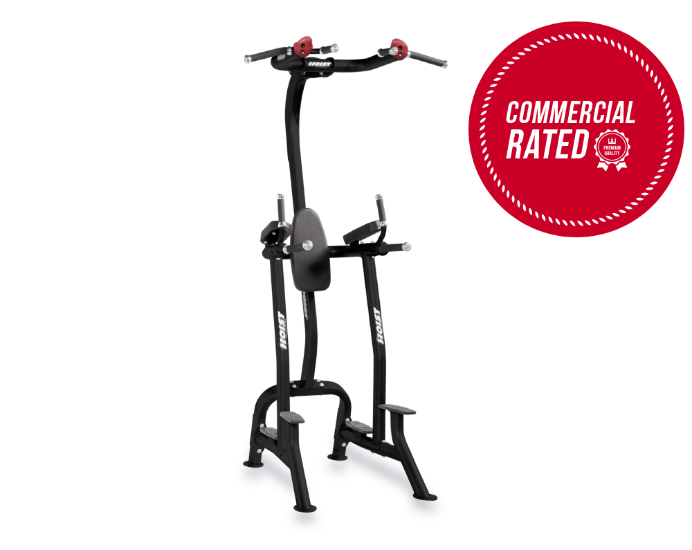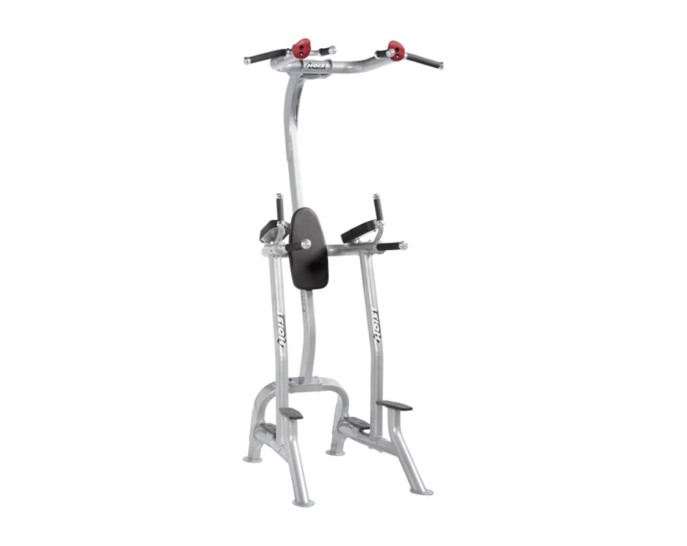 - Angled arm rests offer stable positioning for vertical knee raise exercises