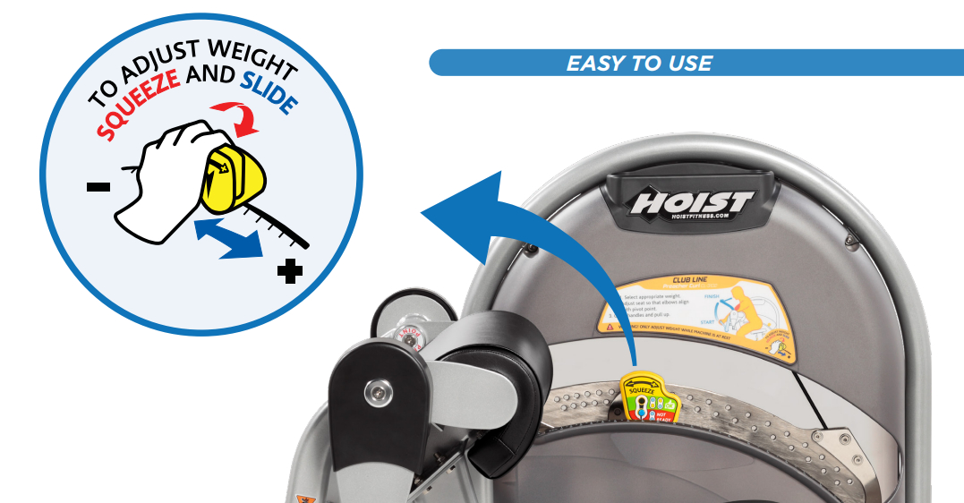 The new CLUB LINE from HOIST® fitness offers a smaller, quieter option to owners looking for more space in their facility with the premium equipment that only HOIST® Fitness can offer. Compared to six major competitors, the original 8 CLUB LINE units take up 8-25% less f loor space per machine, leaving more room for facilities to utilize. Competitors also have machine profiles that are 8-27% taller, significantly obstructing and cluttering views. Each unit has a convenient accessory tray for keys, a phone, and water bottle as well as easy weight selection from a seated position.