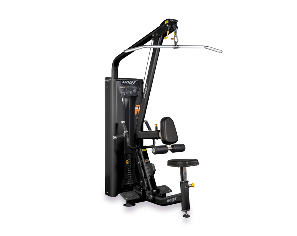 The HOIST® Fitness Lat Pulldown/Mid Row HD-3200 featuring our own telescoping chest pad with integrated thigh pads, provides proper positioning and support for pulldown and mid row exercises. An ultra-lite, aircraft grade aluminum bar for lat pulldown exercises, along with integrated storage for the bar during mid row exercises is included. Dual position hand grips for midrow exercises along with multiple adjustment points, makes this HD Dual Series line product an excellent addition to any fitness facility.