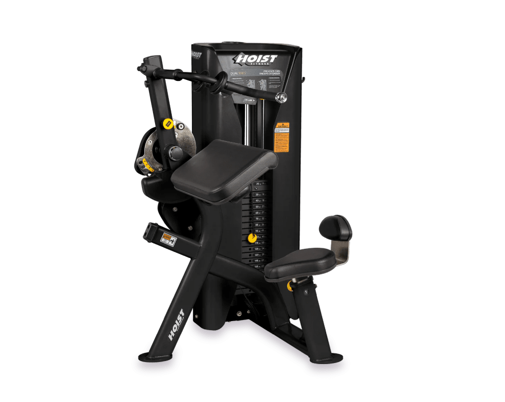 The HOIST® Hoist Fitness Preacher Curl/Triceps Extension HD-3100 with its bi-directional arm and multiple range-of-motion adjustments allows for performance of both biceps and triceps exercises all in one machine. Multiple grip options and seven seat adjustments for varying user heights also comes standard with this machine. The HD-3100 is part of HOIST’s HD Dual Series line, offering a comprehensive solution for fitness facilities where space, budget or both are at a premium.