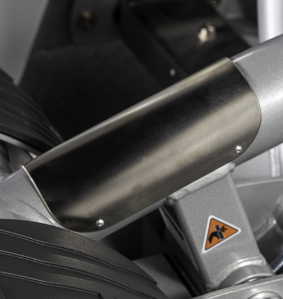 - Integrated Scuff Guards & Rubber Foot Protectors-Protects the machine’s frame finish and facility floor