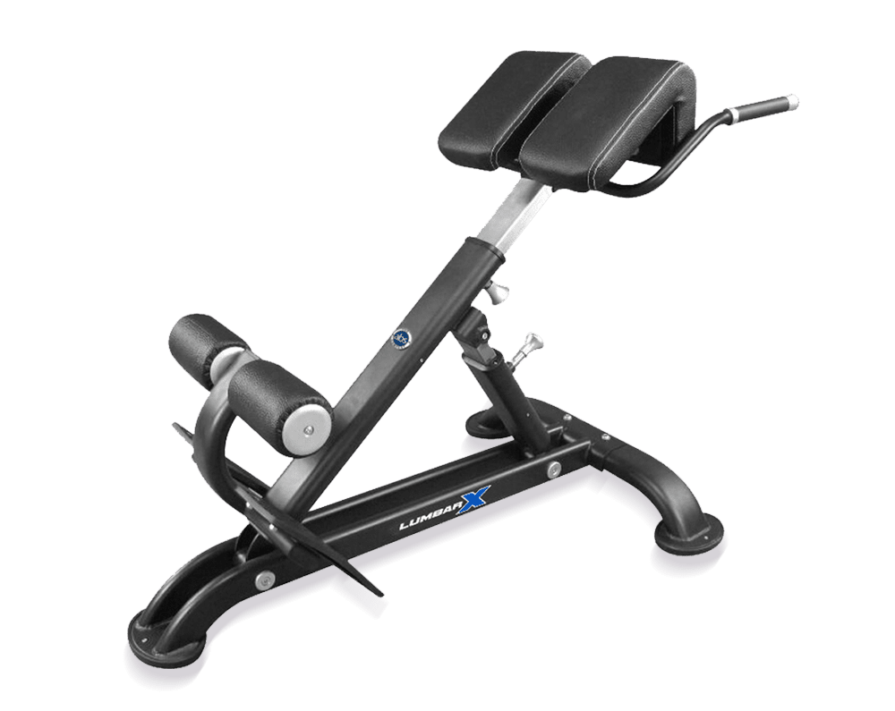 The LumbarX is a versatile piece of equipment designed for development of the lower back, glutes, and hamstrings. This 45-degree back extension bench with its comfortable padding and telescoping height make it the perfect complement for an entire core workout. The LumbarX is a fundamental piece of equipment for core training.