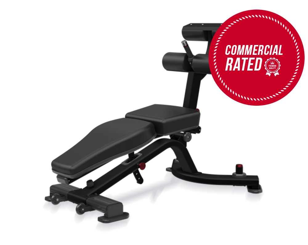- Multiple positioning for exercise variation 0 to 30 degrees of decline