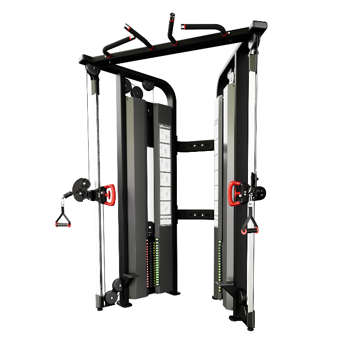 | USER DEFINED RANGE OF MOTION: | Unlimited high-low cable positioning combinations with extended cable travel for a variety of exercises. Plus standard, integrated pull up bar with multi-grip hand positioning. |