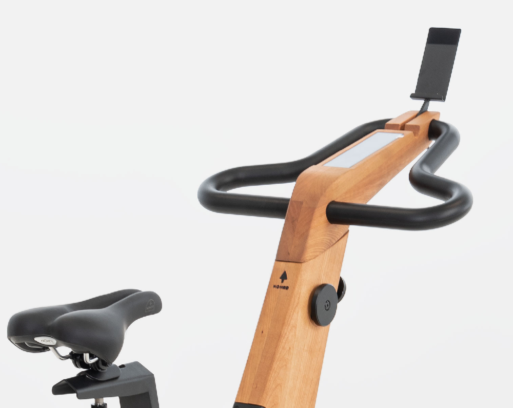 Our cleverly designed holder can be opened up to securely accommodate your smartphone or tablet during your training sessions. A concealed rubber fastening band can be pulled out from the wooden frame to hook a the top for a steadfast grip to ensure stability while exercising or if re-positioning the NOHRD Bike.