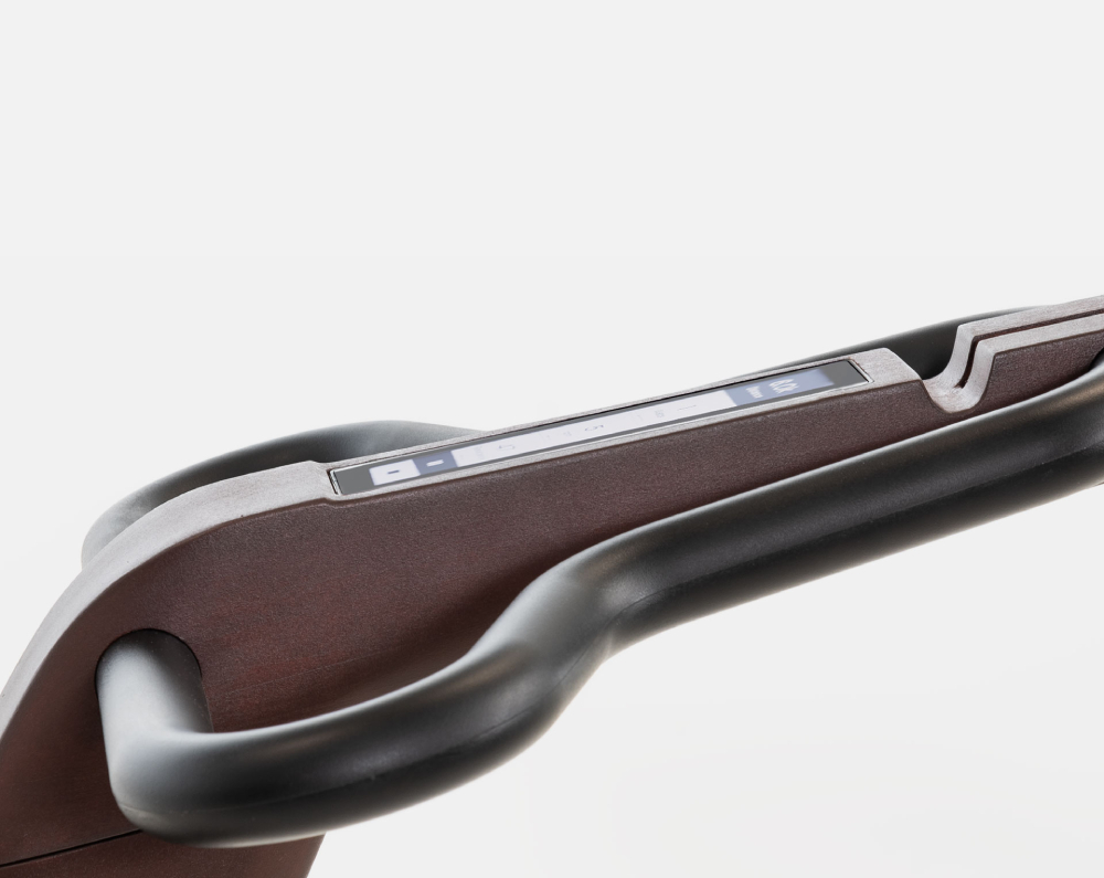 Having pursued a minimalist, sleek design inherent to athletic cycling, boasts an impressive, clear structure with a distinct flow. Cyclists will appreciate being able to train in both an upright or racing position, for which the handlebar provides various grip possibilities and can be adjusted for a range of cycling angles.