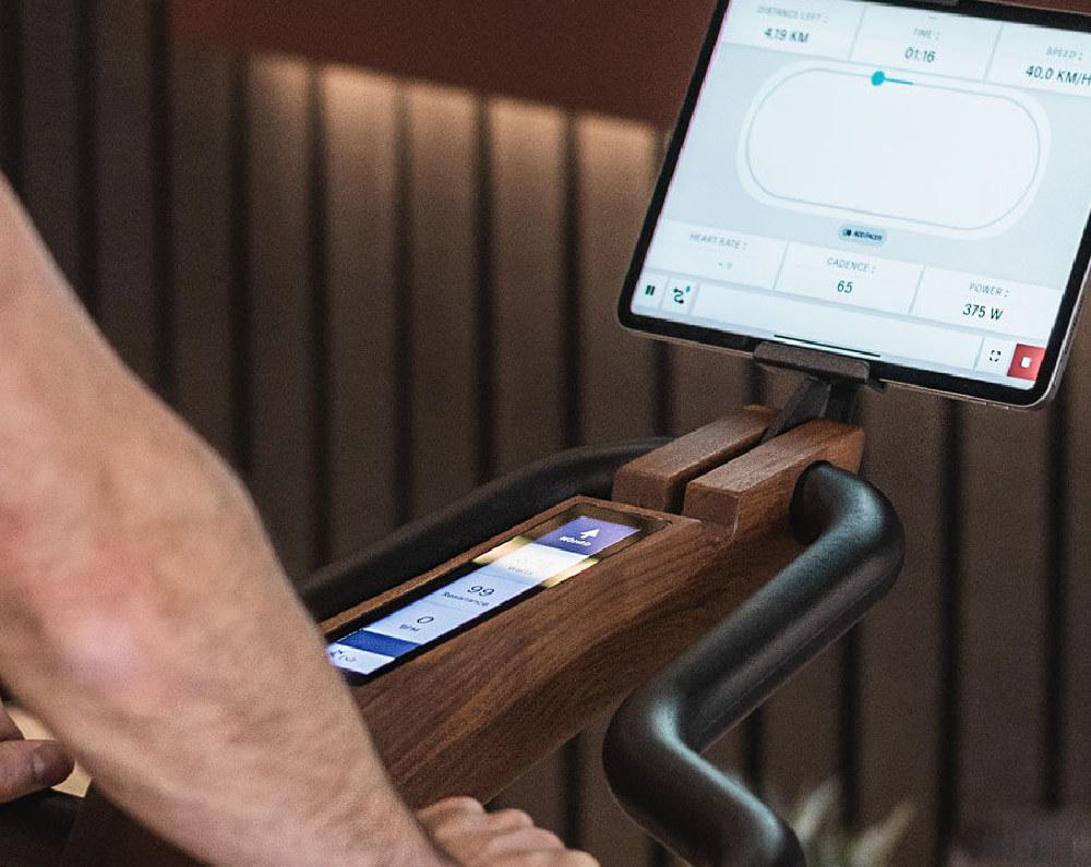The NOHRD Bike V2 Club is equipped with a seamlessly integrated touchscreen, discreetly embedded within the handlebar. This interactive display provides a clear overview of all relevant training data in a clear and customizable format.