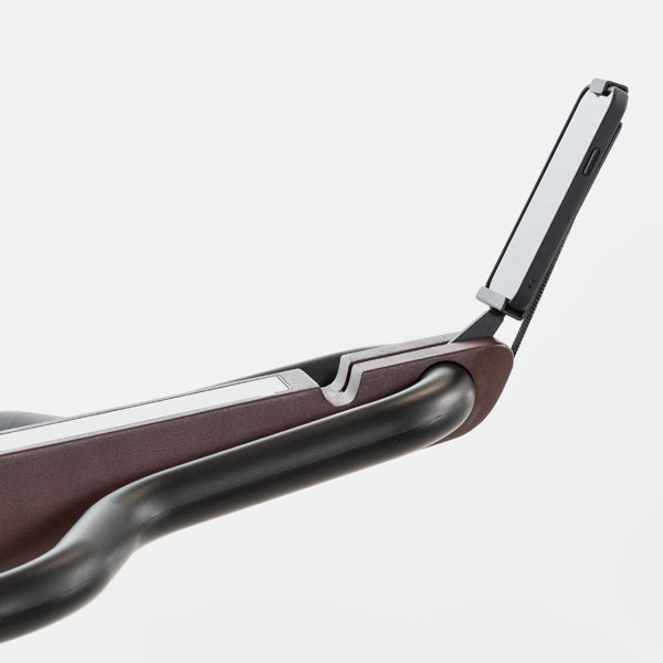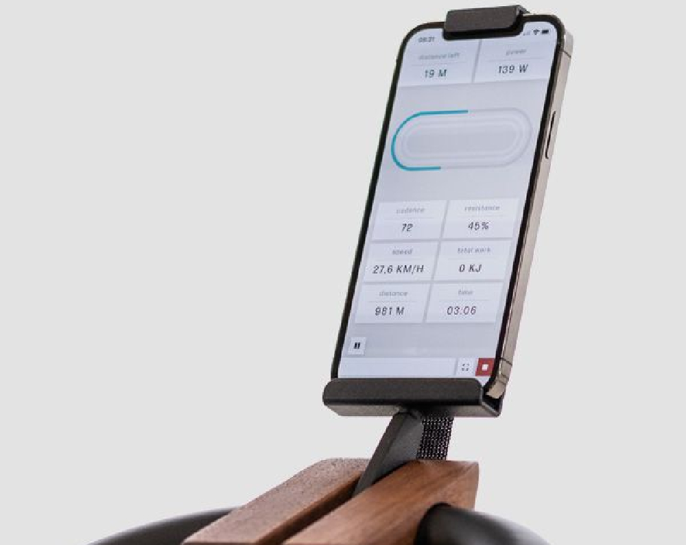 Our cleverly designed holder can be opened up to securely accommodate your smartphone or tablet during your training sessions. A concealed rubber fastening band can be pulled out from the wooden frame to hook a the top for a steadfast grip to ensure stability while exercising or if re-positioning the NOHRD Bike.