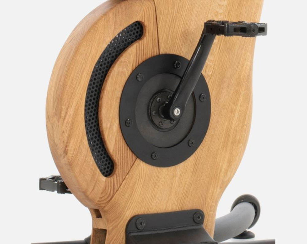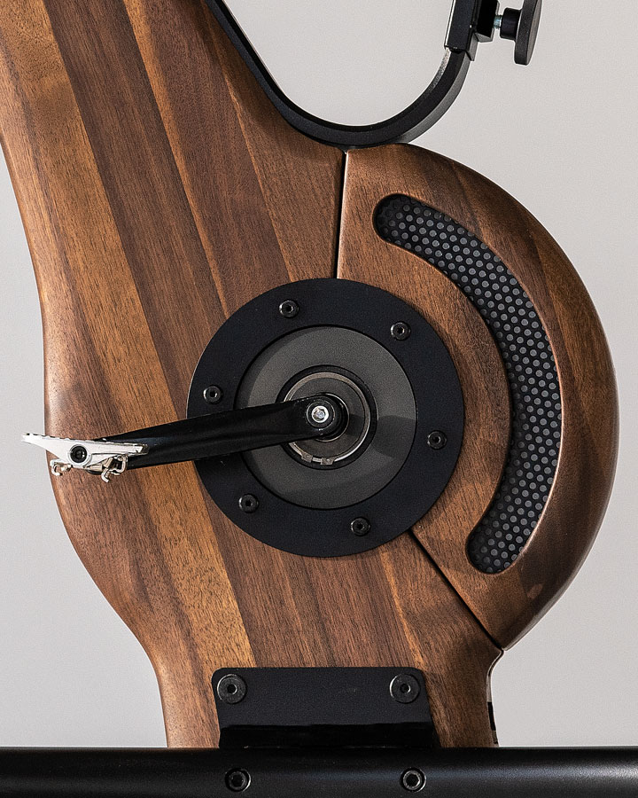 The technical features of NOHRD Bike V2 Oak include an innovative gear unit, as well as a smooth and wear-free break technology based on the Foucault current, which guarantees extraordinary durability. The resistance to the stroke of the pedal is precise and infinitely variable by turning the adjustment dial.