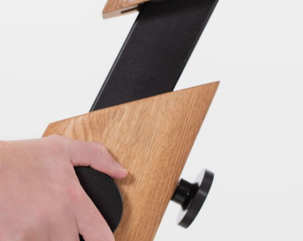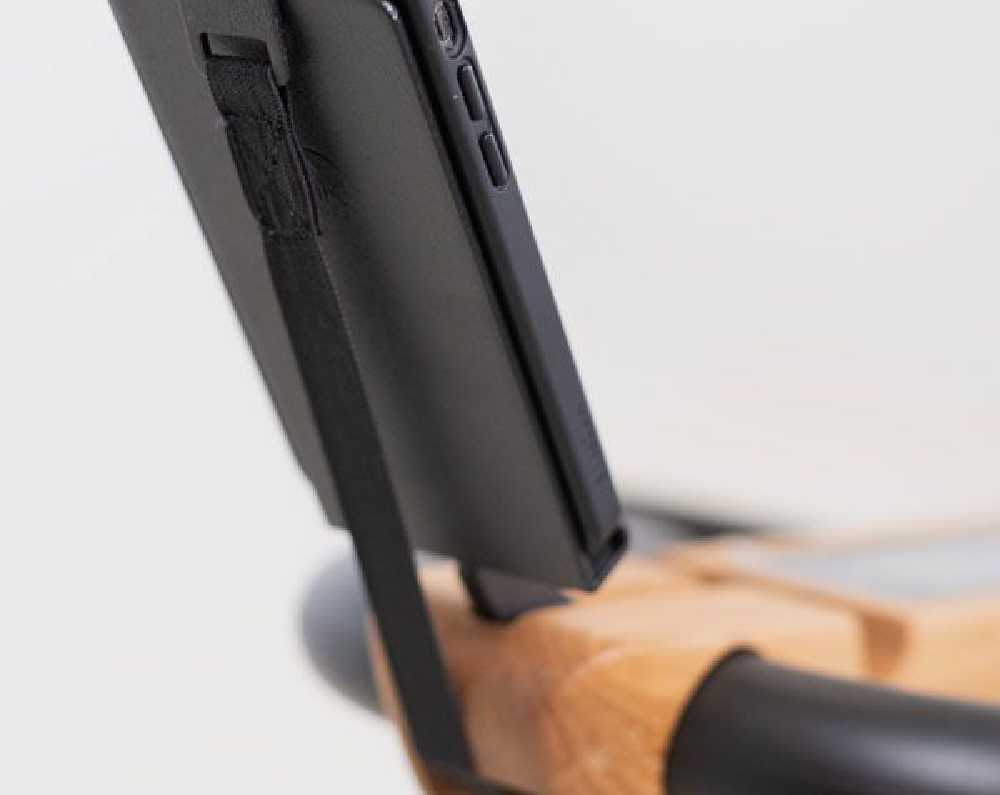 Our cleverly designed holder can be opened up to securely accommodate your smartphone or tablet during your training sessions. A concealed rubber fastening band can be pulled out from the wooden frame to hook a the top for a steadfast grip to ensure stability while exercising or if re-positioning the NOHRD Bike.