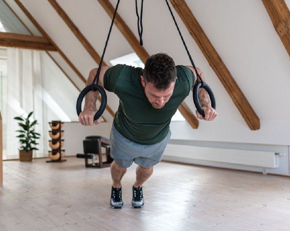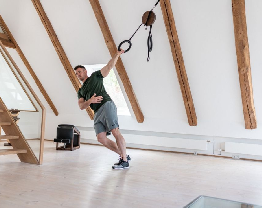 Suspension – or sling – training continues to stand out as a top choice for a full-body workout method, due to its multi-layered advantages. Choose from a wide range of exercises that can be adapted to all fitness levels. This form of training forces you to engage multiple muscle groups simultaneously by always requiring you to stabilize and balance. You’ll constantly be working your core, as your body’s suspended position forces these muscles into constant work mode. The results: a strong core and overall balanced strength development.