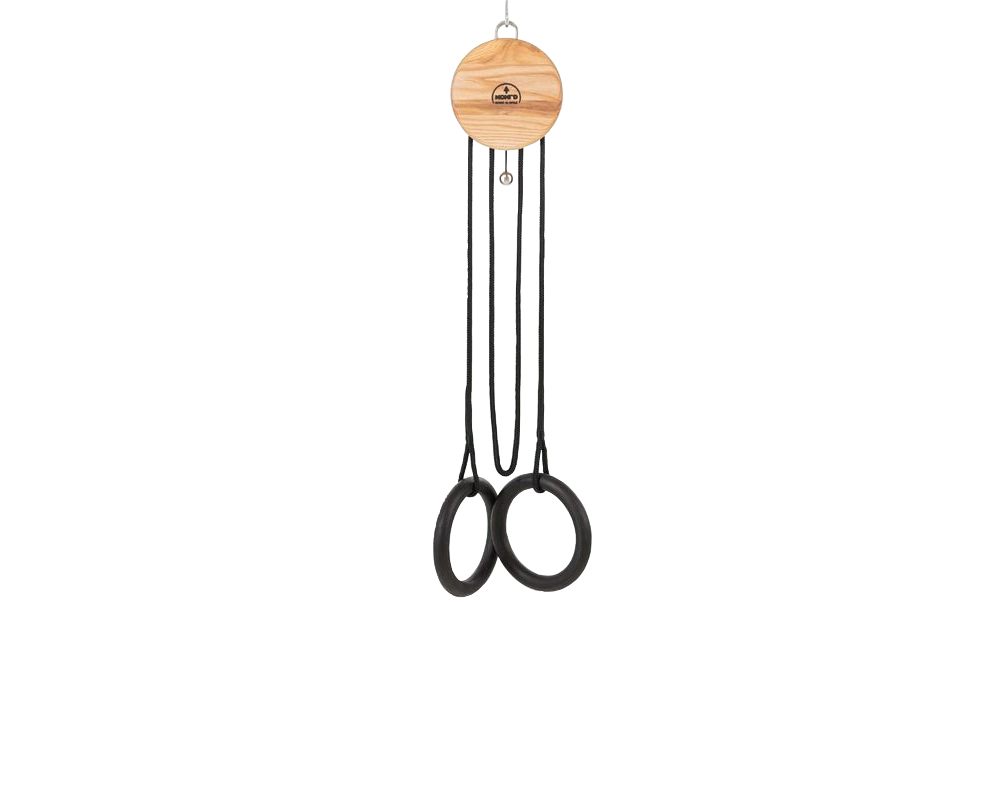 The NOHRD Sling design centers around 2 sturdy wooden gymnastic rings with that serve as handles or foot holders, depending on your specific exercise. All natural materials used for a solid and comfortable grip. The rings have a 24 cm diameter and weight capacity of 150 kg.