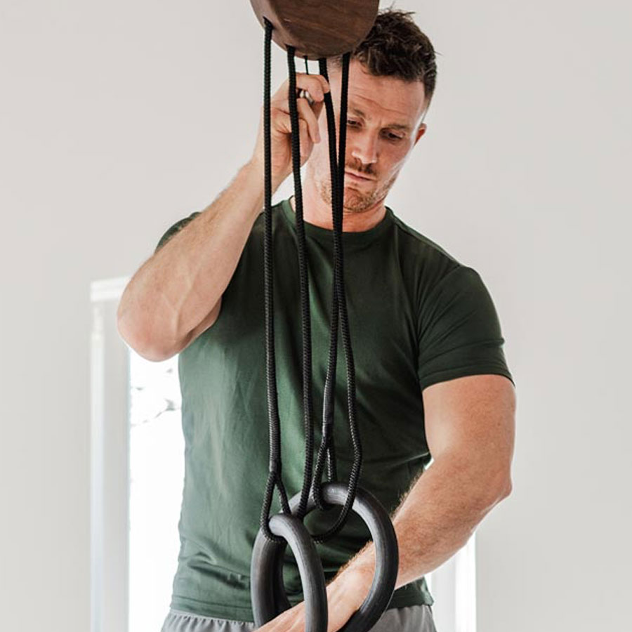 Unlike other suspension training systems with cumbersome buckles and straps needing adjustment, the NOHRD Sling boasts easy settings thanks to its quick-adjust system in the solid wood disc-housing. Effortlessly modify the length of ropes supporting the handle rings for easy transitions and an uninterrupted workout experience.