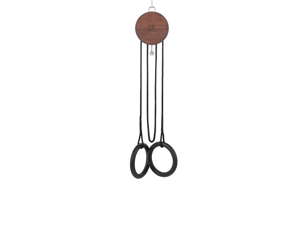 The NOHRD Sling design centers around 2 sturdy wooden gymnastic rings with that serve as handles or foot holders, depending on your specific exercise. All natural materials used for a solid and comfortable grip. The rings have a 24 cm diameter and weight capacity of 150 kg.