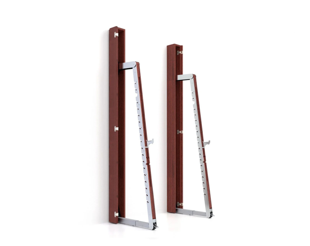 The NOHRD SquatRack Club is a testament to meticulous craftmanship, boasting an eye-poppingly sleek design. It completely folds and extends from 2 separate casings, with real wood veneer, mounted to your wall. Every detail, from the premium wood to the fine metal accents, has been carefully chosen to create a visually stunning and durable piece of equipment.