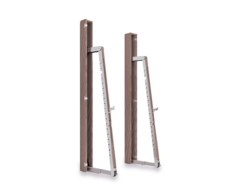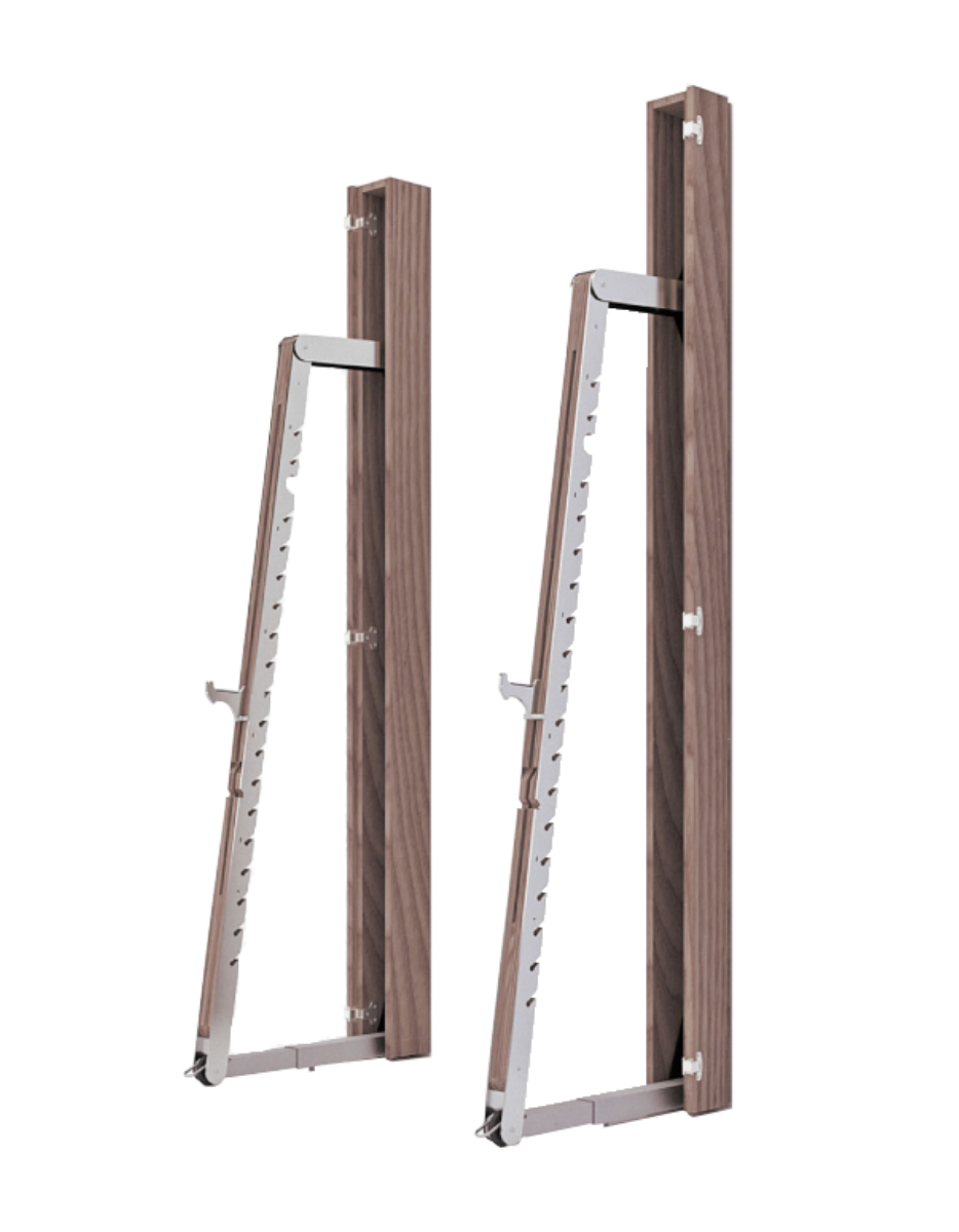 The NOHRD SquatRack Vintage redefines maximum adjustability with its unique foldable and extendable function. When completely stored, the two wooden columns take up minimal space, yet when fully extended, the NOHRD SquatRack provides all the features you need for a safe and effective weightlifting session.