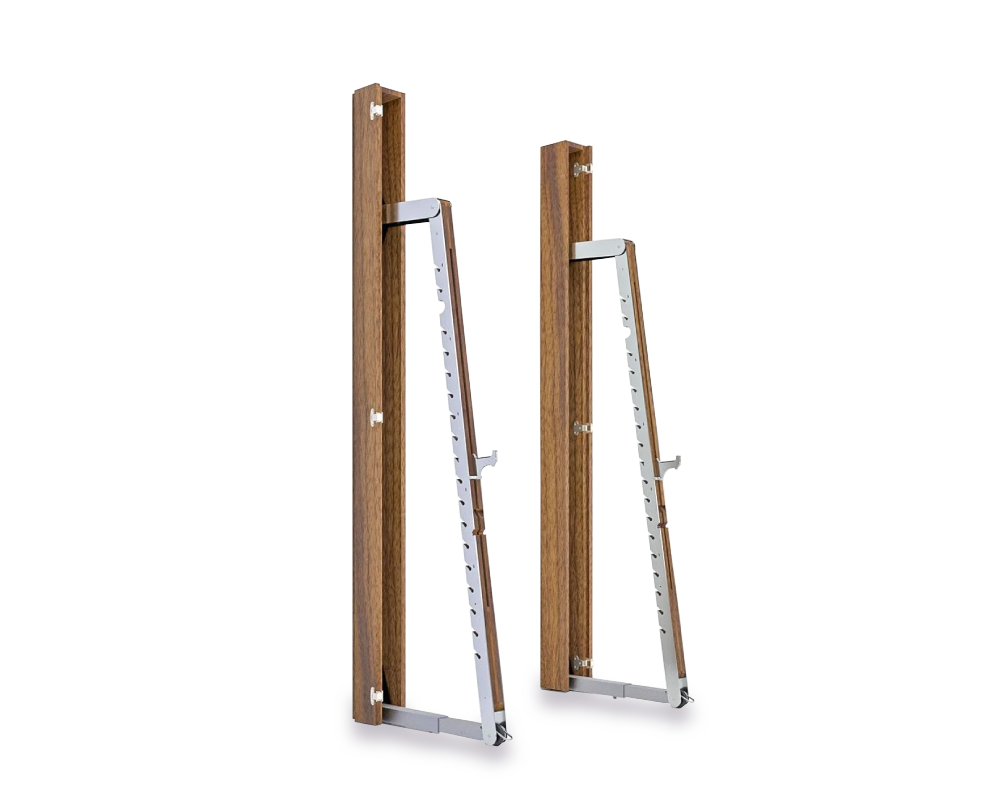 The NOHRD SquatRack Walnut redefines maximum adjustability with its unique foldable and extendable function. When completely stored, the two wooden columns take up minimal space, yet when fully extended, the NOHRD SquatRack provides all the features you need for a safe and effective weightlifting session.