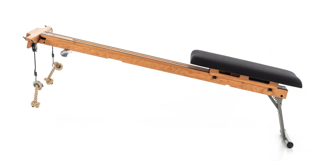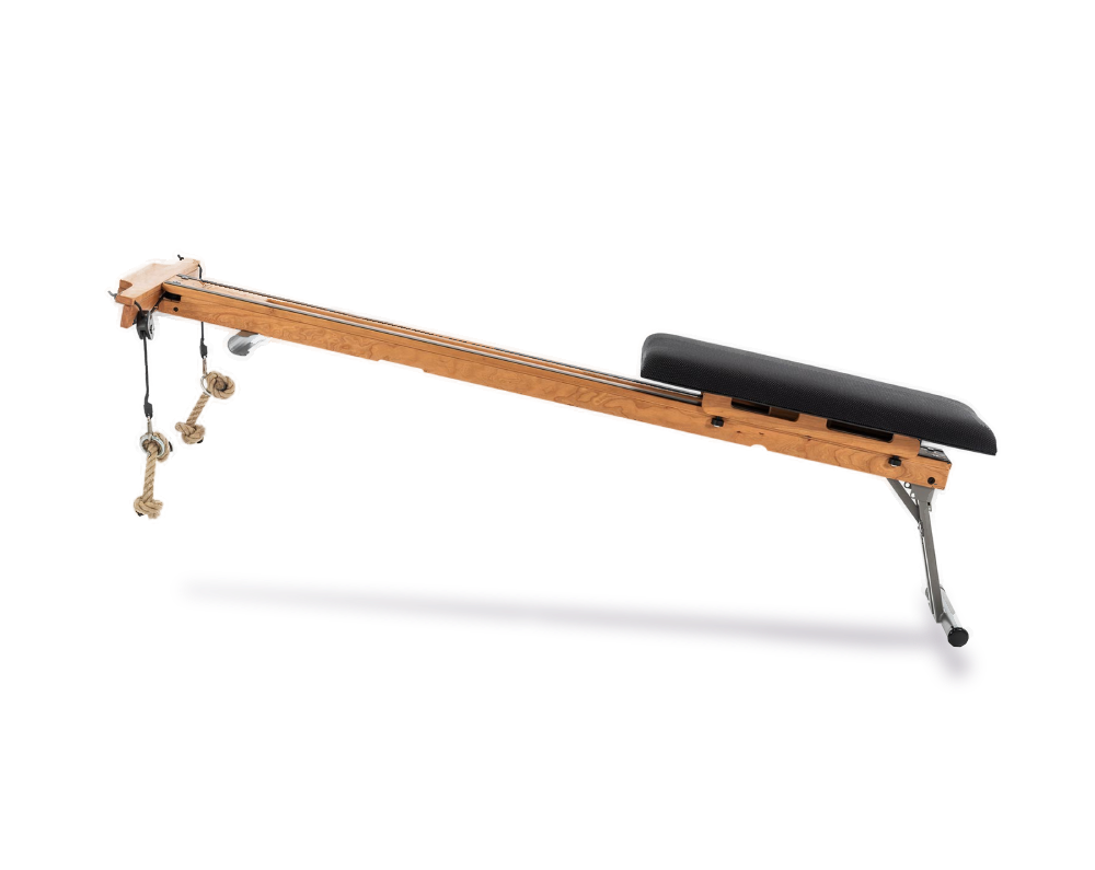 The NOHRD WallBars CombiTrainer Cherry is an innovative training aid designed exclusively for use with NOHRD WallBars. This unique accessory upgrades workouts by offering a comprehensive range of exercises that target strength, flexibility, and core stability, all using the resistance of your own bodyweight. The CombiTrainer combines a sliding flat bench with a cable and pulley system, delivering a dynamic and engaging training experience. By pulling the rope handles attached to the cables, the flat bench smoothly moves, allowing users to perform a variety of movements that work against their body weight, stimulating muscle fatigue and promoting muscle development.