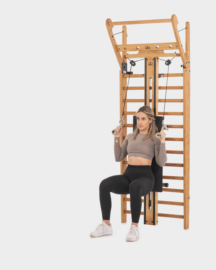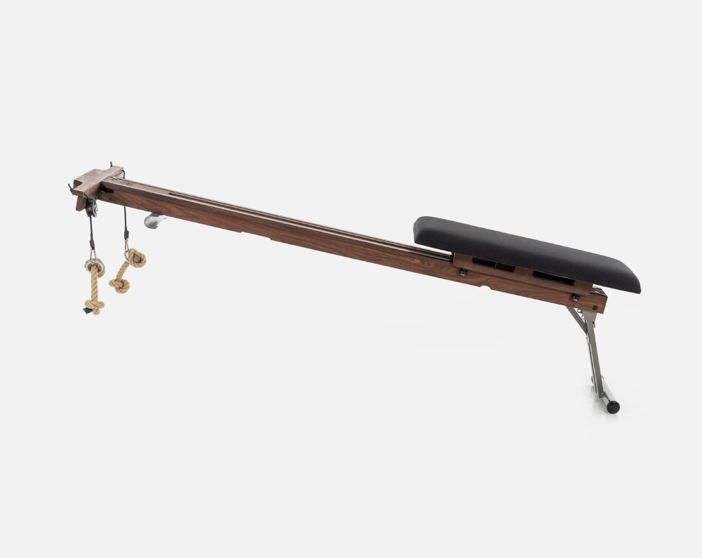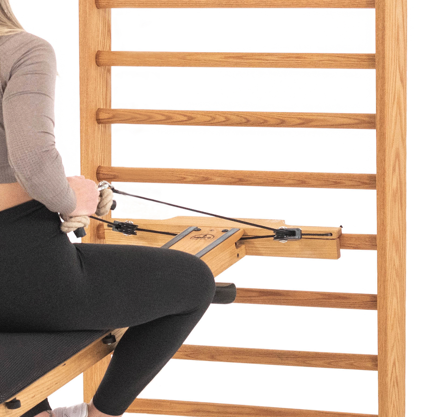The NOHRD WallBars CombiTrainer Walnut is an innovative training aid designed exclusively for use with NOHRD WallBars. This unique accessory upgrades workouts by offering a comprehensive range of exercises that target strength, flexibility, and core stability, all using the resistance of your own bodyweight. The CombiTrainer combines a sliding flat bench with a cable and pulley system, delivering a dynamic and engaging training experience. By pulling the rope handles attached to the cables, the flat bench smoothly moves, allowing users to perform a variety of movements that work against their body weight, stimulating muscle fatigue and promoting muscle development.