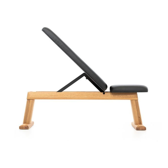 The NOHRD WeightBench Oak is a flat to incline workout bench. Designed with both function and aesthetics in mind, the WeightBench is constructed from a solid wood frame with high-quality vegan leather upholstery.