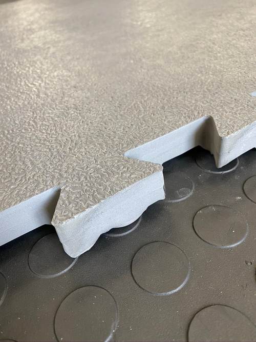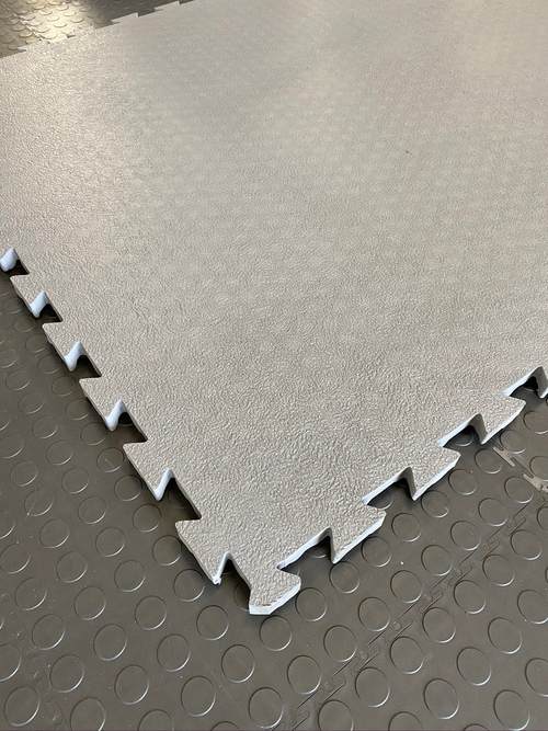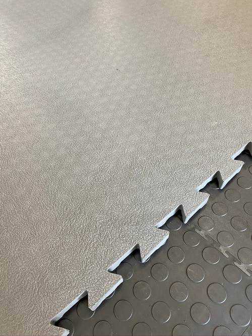 MAT030 is available in numerous solid colors and can be produced with a rough surface or smoother plain surface. It is produced in large interlocking puzzle tiles for easy installation without any need to be glued down.