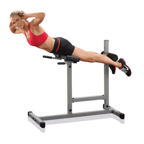 - Roman chair/back hyper extension supports abdominal, back, gluteus, and hamstring training