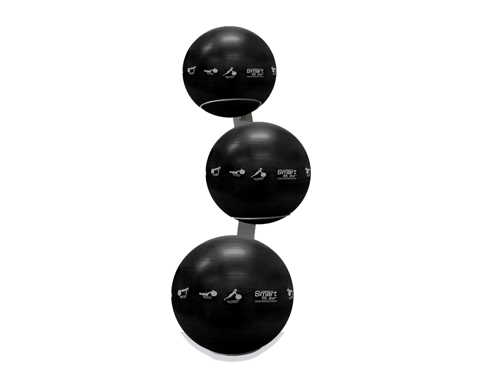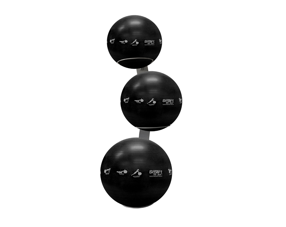 - Our wall mounted rack can easily accommodate up to 3 standard size Smart Stability Balls.