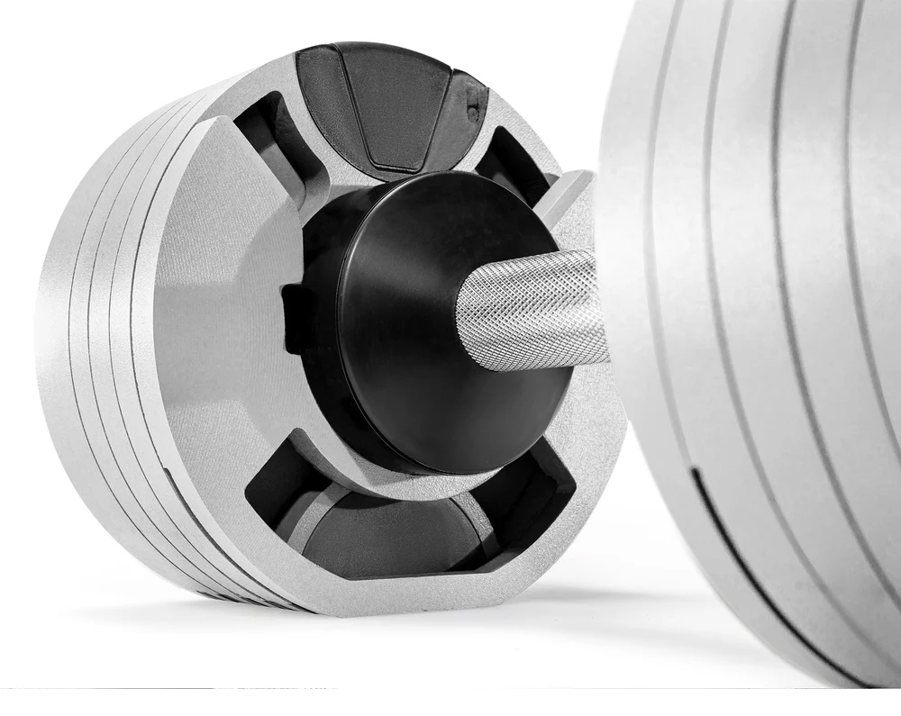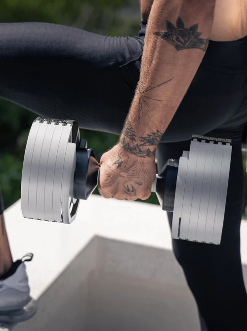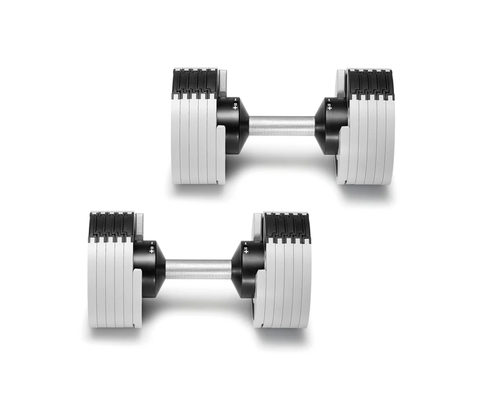 SMRTFT NÜOBELL 50lb Ash Key Adjustable Dumbbells Set Features: