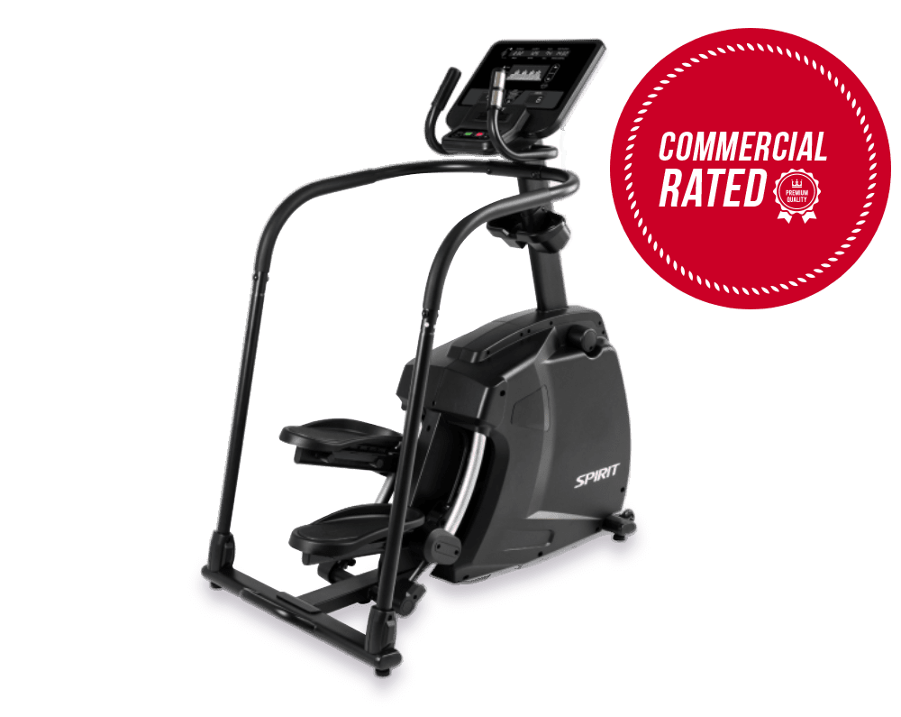 The Spirit CS800 Stepper is a commercial-rated stairclimber with dependent stepping action for an effective lower body workout during cardiovascular exercise. The familiar dependent foot action, arched step-rail design, impressive 16” maximum step height, narrow 2” pedal spacing (Q-Factor), large cushioned pedals, and solid handrail design combine to give you an incredibly comfortable and space-efficient cardio unit.