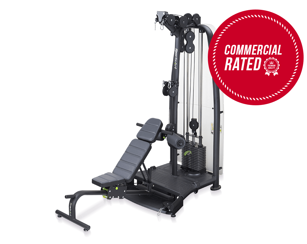Single stack efficiency and 1:4 pulley ratio make the SportsArt A93 Functional Trainer Gym w/ Bench an extremely versatile rehab and conditioning tool for multiple patient types.