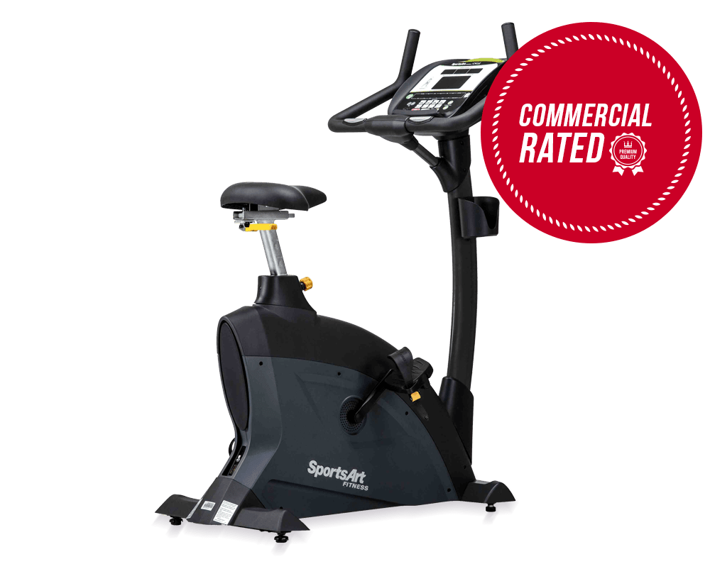 SportsArt Commercial Upright Stationary Bike | C545U Performance Series – The SportsArt C545U Upright Bike upright cardio bike by SportsArt is designed and built for commercial use including residences, training studios, corporate wellness centers and multi-unit housing complexes. Coming in with a total user weight capacity of 450 lbs., the C545U is the most robust commercial upright bike in the SportsArt line-up. A four way seat adjustment ensures that users of all sizes can customize the ride to their own specific needs for best comfort. A specially designed low-profile shroud makes for easy entry and exit from either side. Specially designed pedals are oversized for allowing more real-estate under the feet and connecting adjustment straps are quick and easy to use keeping feet secured at all times while riding. Being self-generating, placement of the SportsArt C545U Upright Bike is always optimal and not dictated by the location of a power outlet. And the electro-magnetic resistance is super quiet especially when compared to chain or belt drive bikes which is ideal for residential and small studio settings.