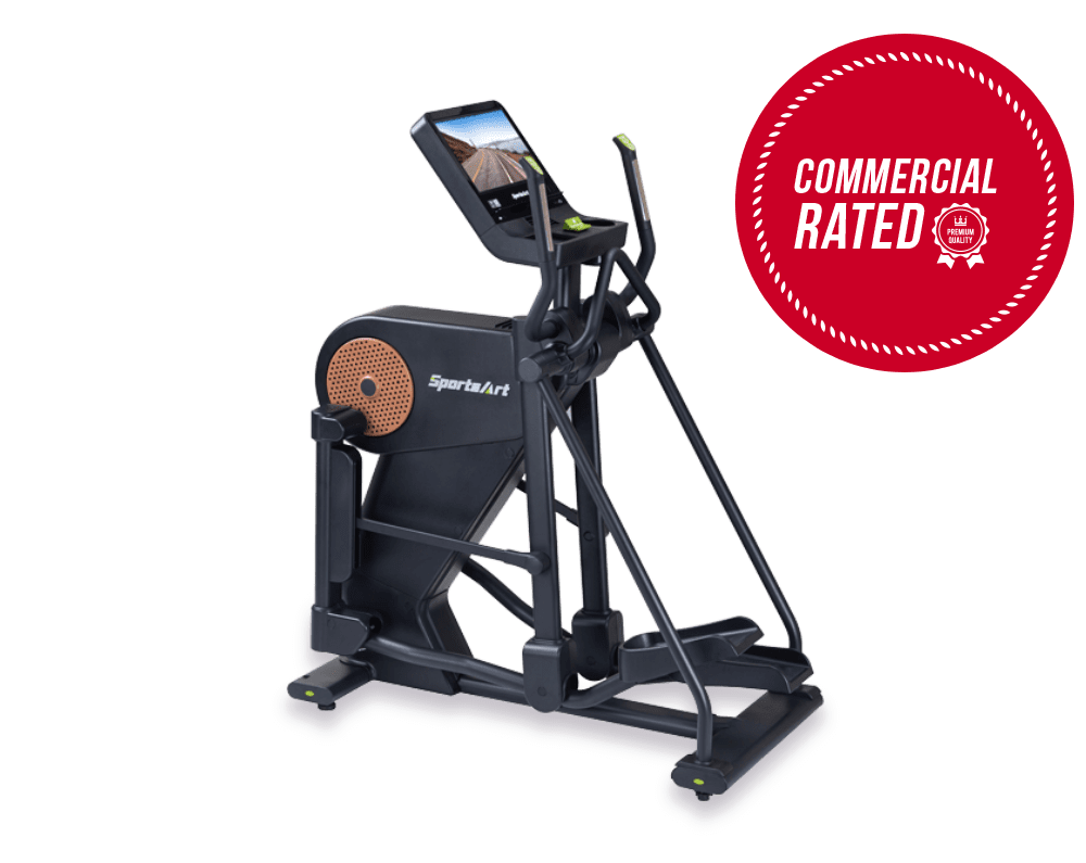 The SportsArt E866-16″ Front-Drive Elliptical Trainer with Adjustable Stride offers low step-up height, rear entry, stride adjustment range from 16 to 28 inches, and a shorter footprint to serve wide range of individuals. Features that optimize performance and comfort include a 3-speed fan, contact heart rate sensors and the 16-inch SENZA™ touchscreen.