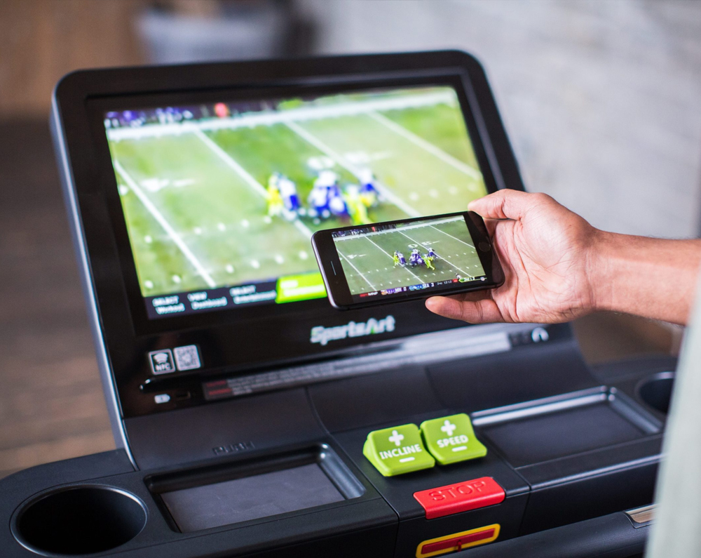 The SENZA™ line encompasses our top tier cardio products, integrated with premium technology and entertainment options that actively engages users by providing an intuitive workout experience that allows them to consume their entertainment, their way. The SportsArt T676-19″ Treadmill is our top tier treadmill with -3 to 15% incline range, 0.15 to 17 mph speed range and an integrated 19-inch SENZA™ display.