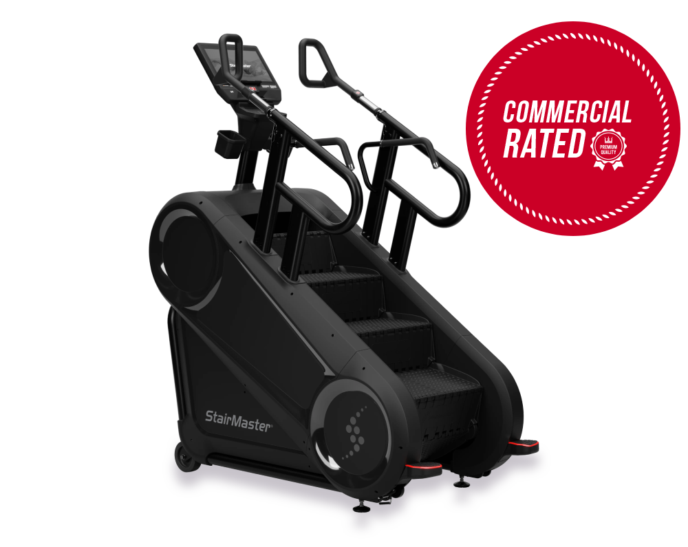 The StairMaster 10G Gauntlet 10 Series Stepmill marks a revolutionary shift in stair-climbing technology. The innovative new design features the OverDrive Training Mode that simulates carrying or pushing a load up stairs, for the most intense climbing workout. The Stairmaster Gauntlet 10G advancements all focus on delivering the best climbing experience ever created. User-focused features include the widest and deepest stepping surface and lowest step-up height in the industry, ergonomic handrails to support multiple climbing positions and an all new drive train that delivers smooth, quiet performance.